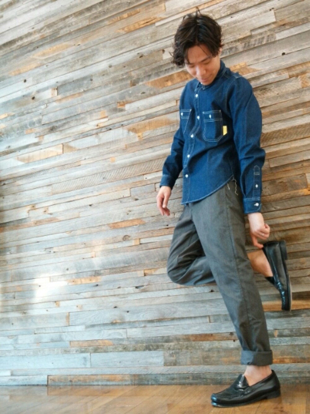 本日のスナップ。 新作秋物デニムシャツ。 ワークテイストな一着で、長く使えそうです。