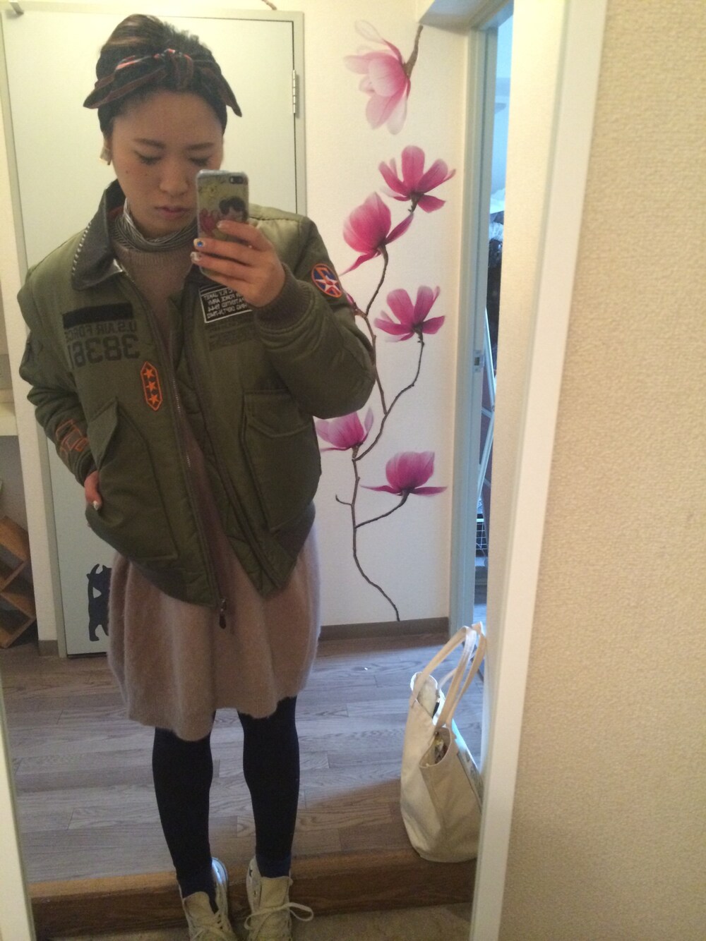 アンゴラのニットワンピにMA-1ヽ(*`ェ´*)ノ 今からこんなに寒がってて、冬が心配でならない…