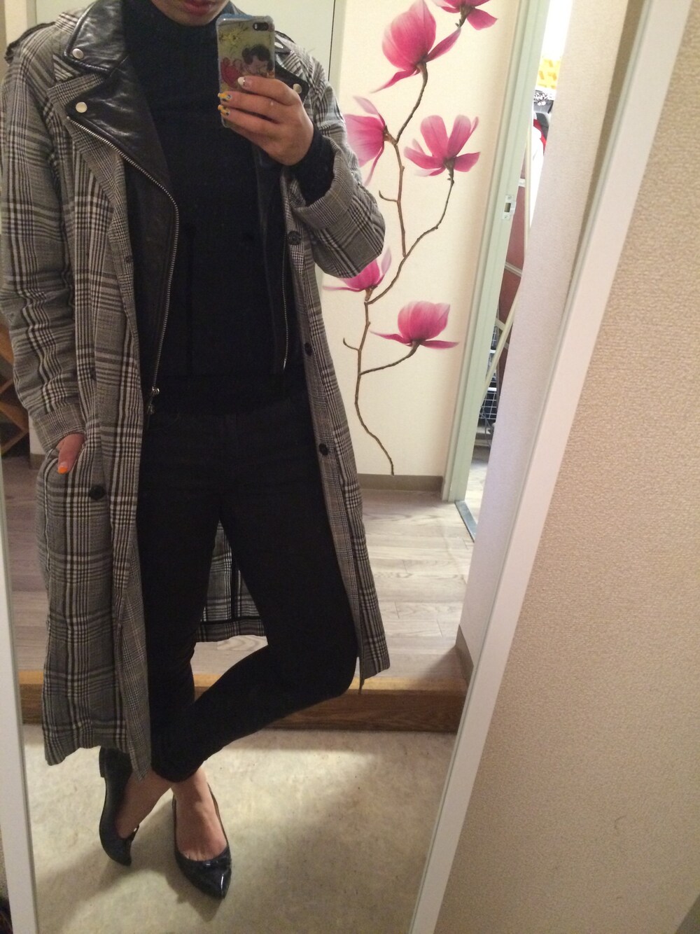 outer:TOPSHOP riders:DOMENICOandSAVIO tips:ENFOLD pants:TOPSHOP チェックコートの下にはライダース〜♪ 冬はウールコートの下にライダース着よっと。 珍しく、ほぼ、オールブラック。るん♪