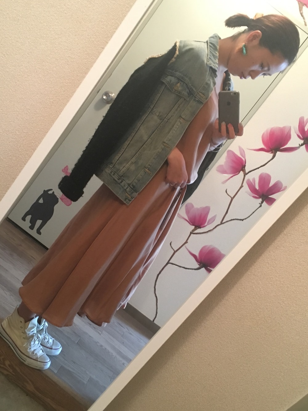 夏に買った、てろんてろんワンピ。今更活躍☺︎ スーパーカジュアルデイ♪