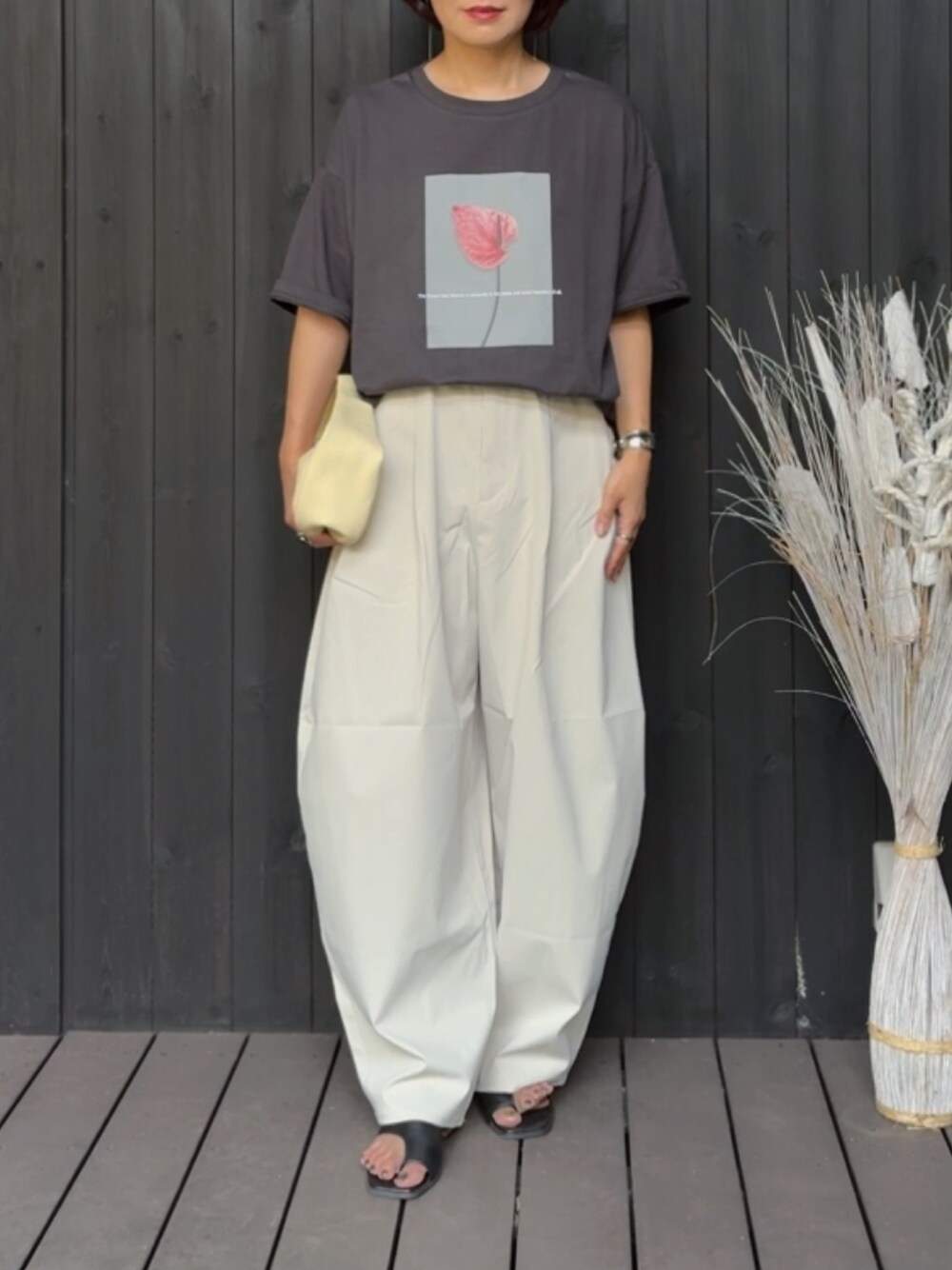 ご覧いただきありがとうございます😊 カジュアルコーデ♡ select MOCA ▶︎オーバーサイズオリジナルプリントTシャツ オリジナルプリントがシックで存在感のある大人Tシャツ✨ 程よい身丈とルーズ感でアウトはもちろんボトムインも◎ 様々なアイテムと合わせやすいです👌 10%OFFタイムセール中です♪ ▶︎フェイクレザートングサンダル 1000円OFFクーポンでてます♪ THE YOn ▶︎ツイルタックコクーンバレルパンツ TODAYFUL ▶︎Leather Wrap Bag ANOH ▶︎バングル LHME ▶︎プランプリング #PR#selectMOCA instagram→ nagu_beni1125