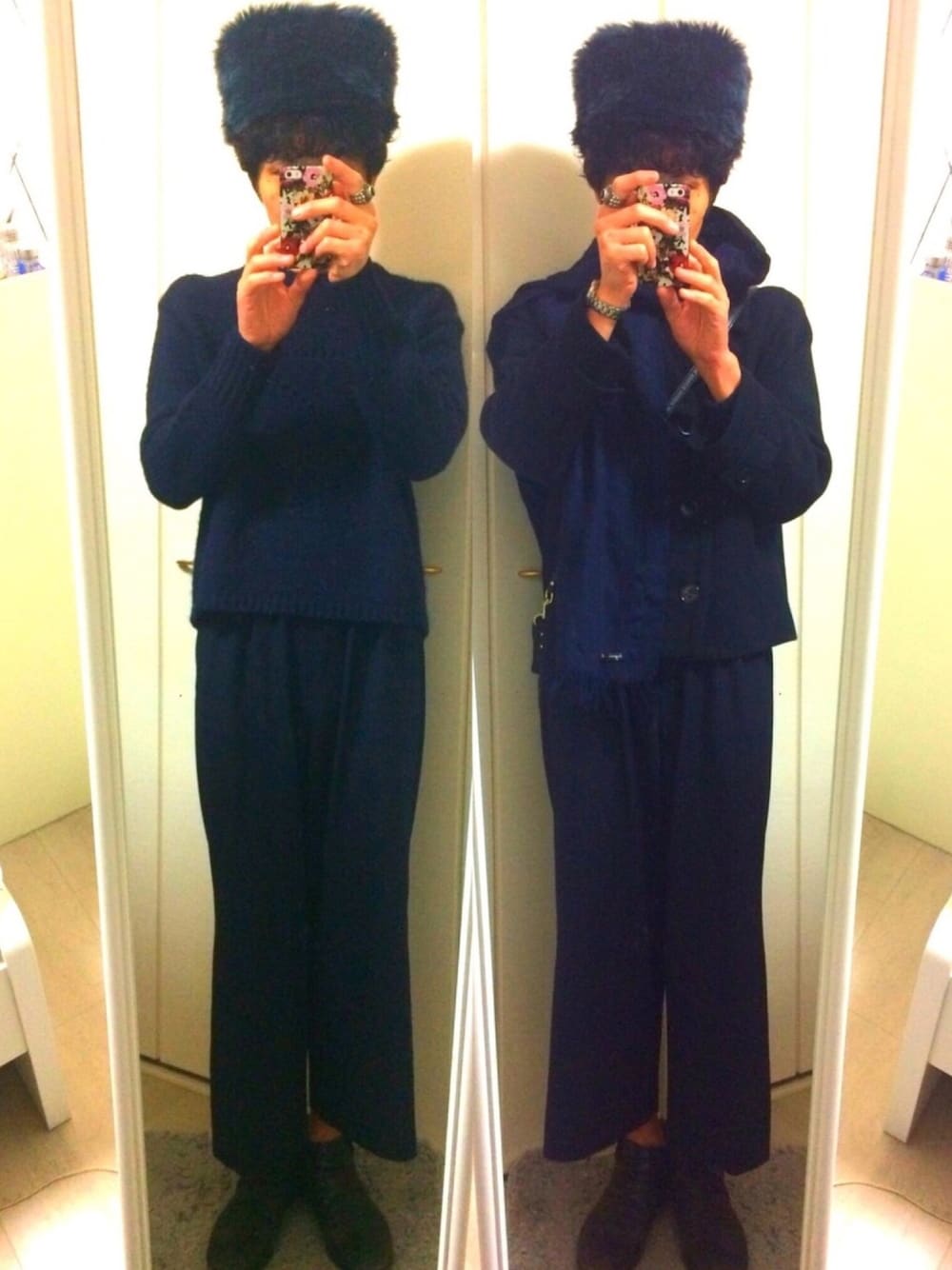 地獄の3連勤が終了しました‼︎ 今日は前回の休みの日(1/5参照)に1人打ち上げ後、以前断念したニットをワンチャン見に行ったら50%オフになっているで、ネイビーと白の色違買いをしました‼︎ そして、今日は悲願のオールネイビー(鞄と靴を除く)ができたのでした‼︎ ちなみにピーコートもプレセールで20%オフで、本セールには完売状態になっていて、今冬のセールは大勝利を収めたのでした‼︎