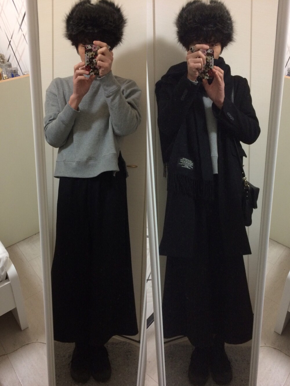 連休2日目です‼︎ 今日はフライトキャップ、スウェット、チェスターコート、ガウチョパンツ等とテイストがバラバラで、コーデネイトのセオリーを無視した仕上がりになりました‼︎