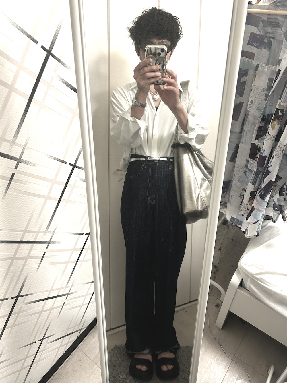 藤枝蘭丸のシャツ/ブラウス「BACK OPEN OVERSIZE SH バックオープン オーバーサイズ シャツ ビッグサイズ スリット」を使ったコーディネート