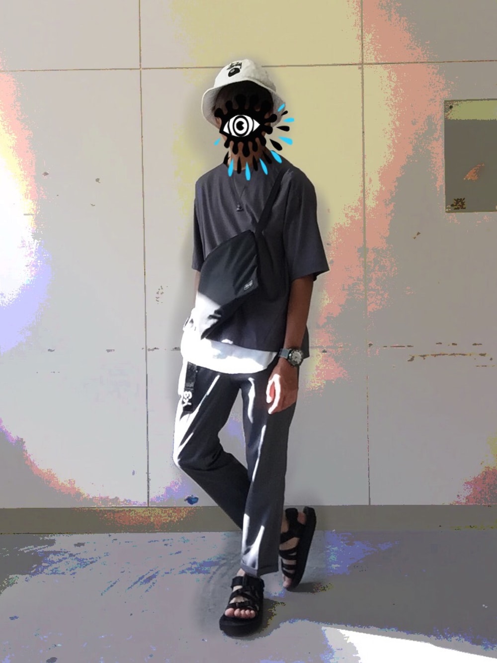 遂に30℃超えしましたね😓 まだ5月やで〜て。 涼しい格好でもキレイ目を意識して、セットアップにしてみました☺️✨ トップスはサテン生地で爽やかに😎 流行りのサコッシュバッグがアクセント✌️