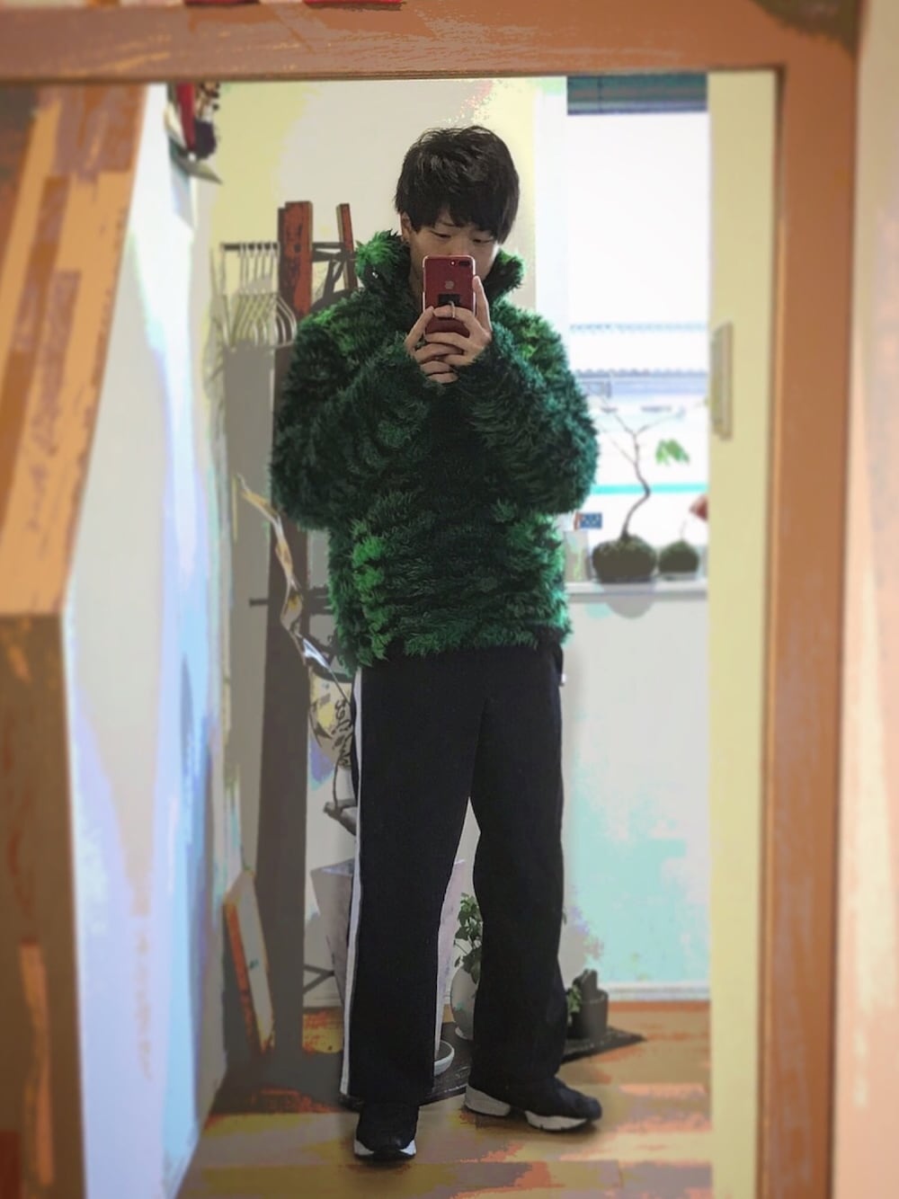 KENZO×H&Mのファーブルゾン。 めっちゃ目立つので痛い目で見られます。。笑 でもめっちゃ暖かいです🔥 靴下は同じ柄で揃えました😎 普段のワイドパンツより少し細めのラインパンツにポンプを合わせてスポーツミックスにしてみました✨ もしよければいいね、フォローお願いします! フォロバ100%です☺️