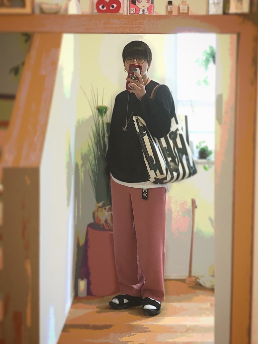 春らしさを出すためにピンクのパンツを主役に黒のオーバーサイズのスウェットを合わせました😎! テロテロしてて落ち感のある気持ちいいパンツです😆✨ MARNIのレディースのトートバッグで個性を出しました!! もしよければいいね、フォロー、SAVEお願いします🤲 フォロバ100%です🌞