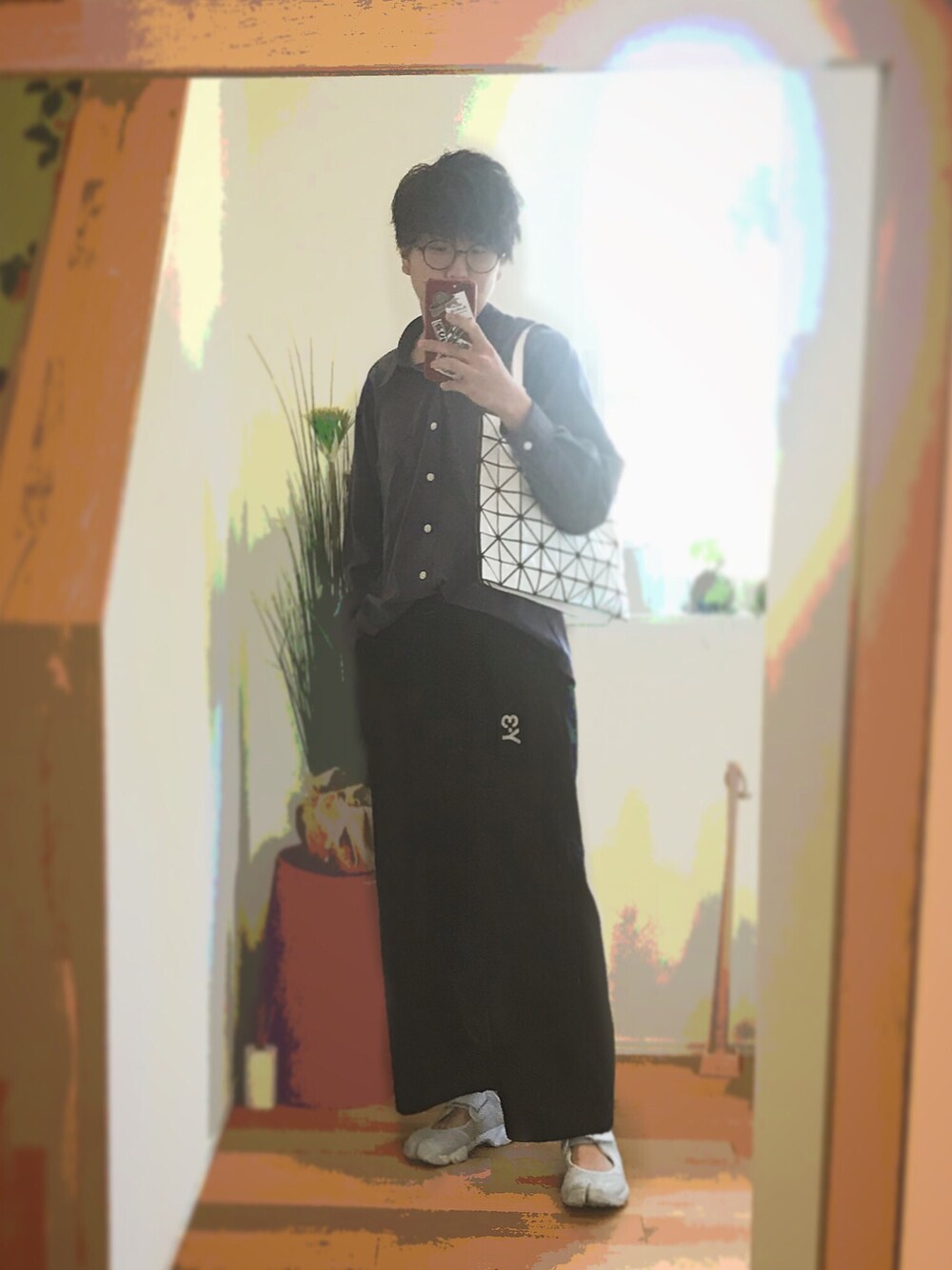 今日は久しぶりに髪の毛をしっかりセットしました😆✂︎ ツイストパーマ風にしてみました😎 コーディネートはそれに合うように少し緩めのレーヨンシャツにワイドパンツを。 足元はエアリフトで外してBAOBAOのバッグを主役にしました☀️ もしよければいいね、フォロー、SAVEお願いします🤲 フォロバ100%です🌞