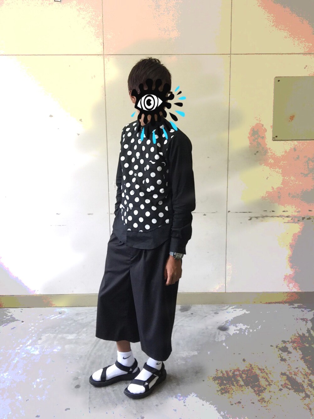 久しぶりの私服です😁 たまにしかおしゃれしないのでお気に入りのギャルソンのシャツをわりと着ちゃいます👐✨笑 今日もモノトーンでモードに決めました🍙 暑くなってきたので足元はサンダルで軽くしてみました🍧