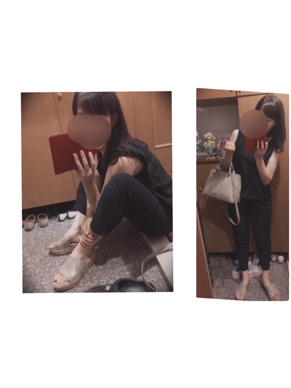 黒×ベージュ サンダルとバッグは同じ色👜