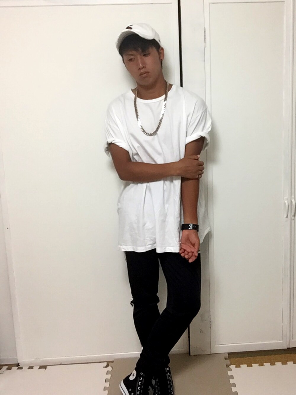 上半身は白下半身は黒!w 肌が真っ黒なのは気にしないでください✋ お気に入りのジャージを使ったコーデ! adidas×convers