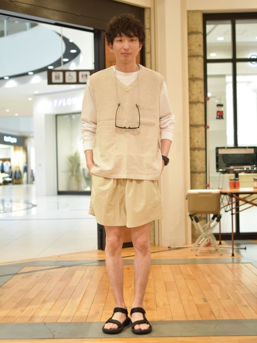 しおやんのベスト「リネンVベスト」を使ったコーディネート