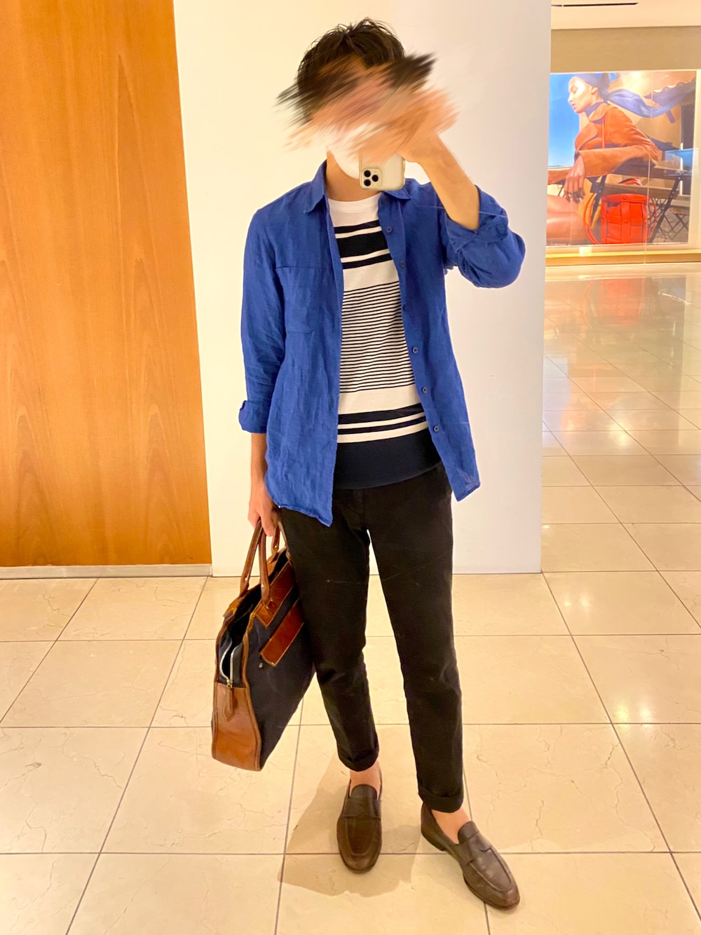 Tomorrow land torico🇯🇵のボーダーニットT 羽織りのリネンシャツはUNIQLOセールで¥2,000くらい…安すぎでは?