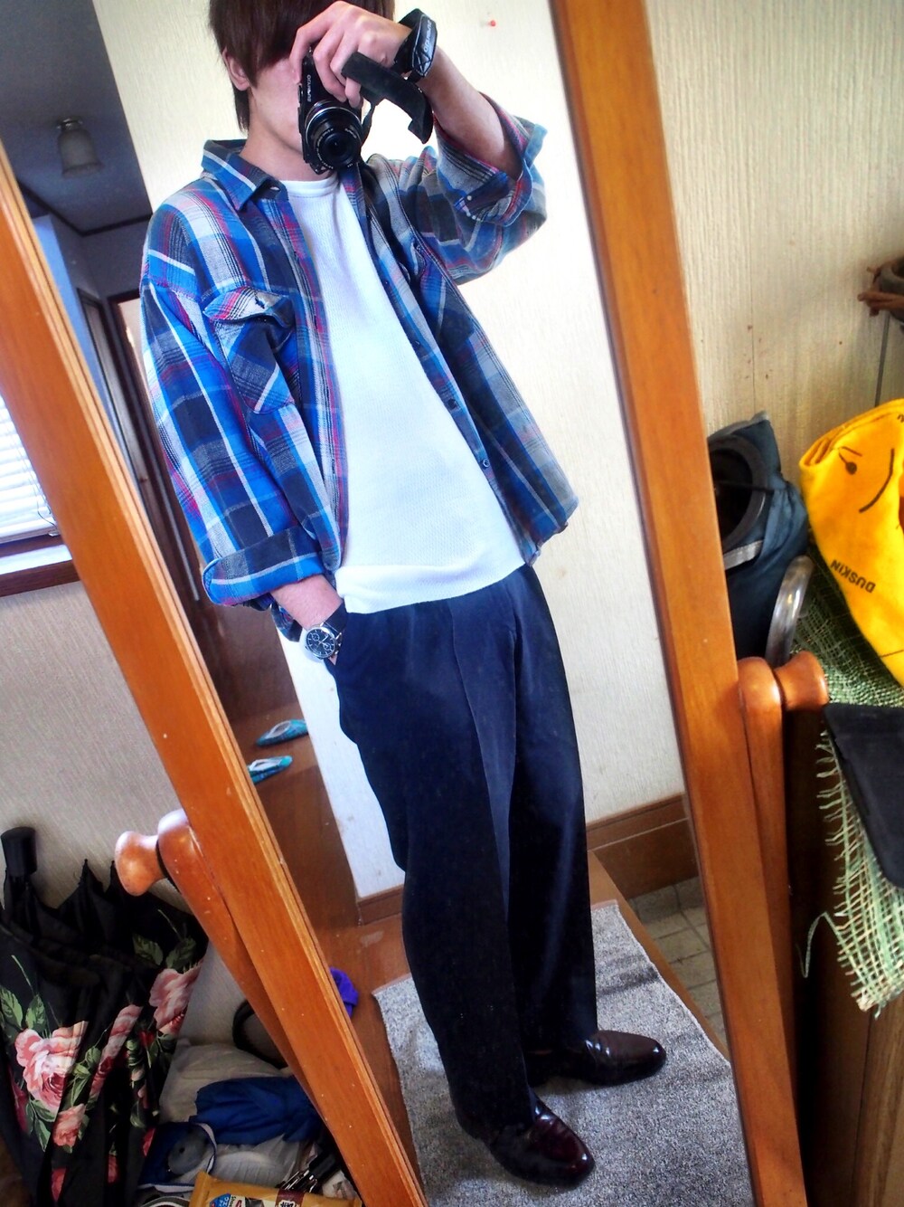 完全な春コーデ。 ヴィンテージのネルシャツがいい感じ