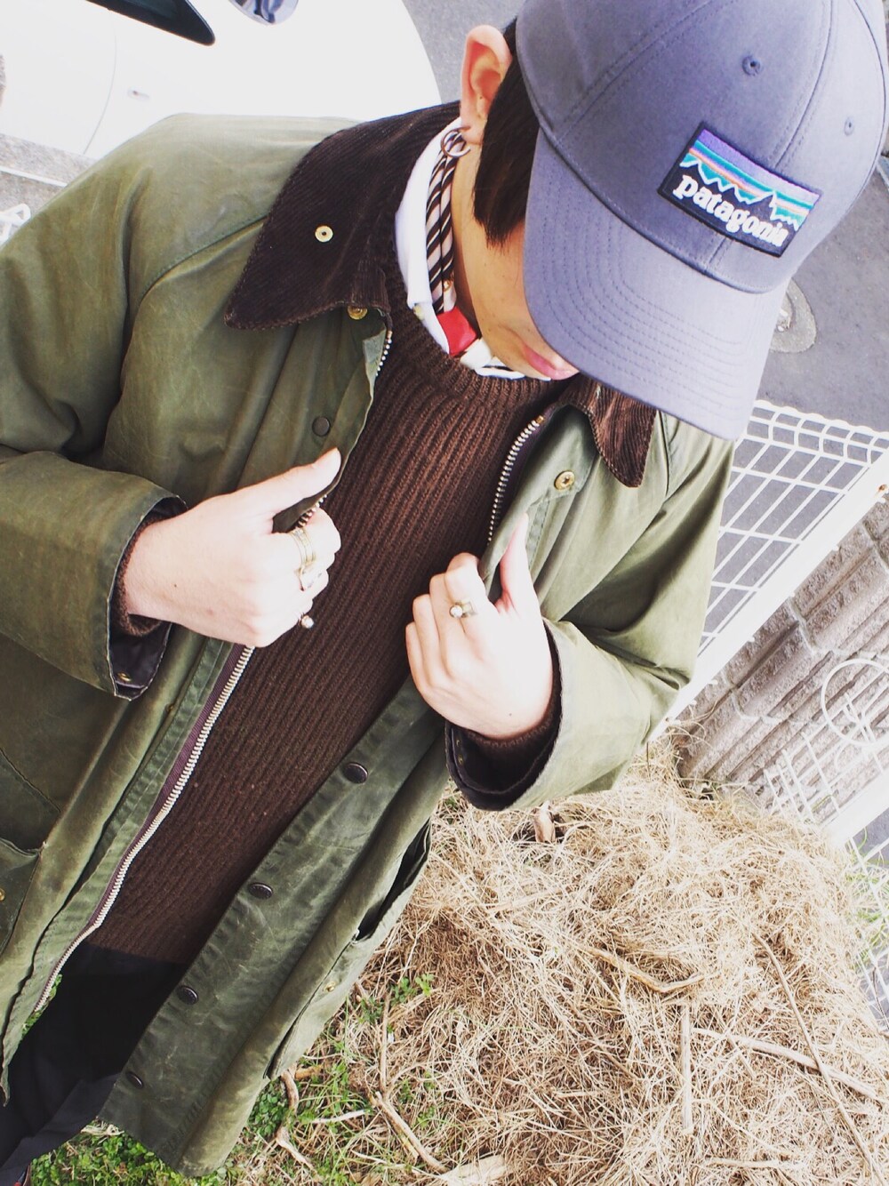 本日もbarbour。今日はshirt×knit×scarfで英国紳士をイメージ。 インスタも絶賛投稿中なので気になる方はよろです!