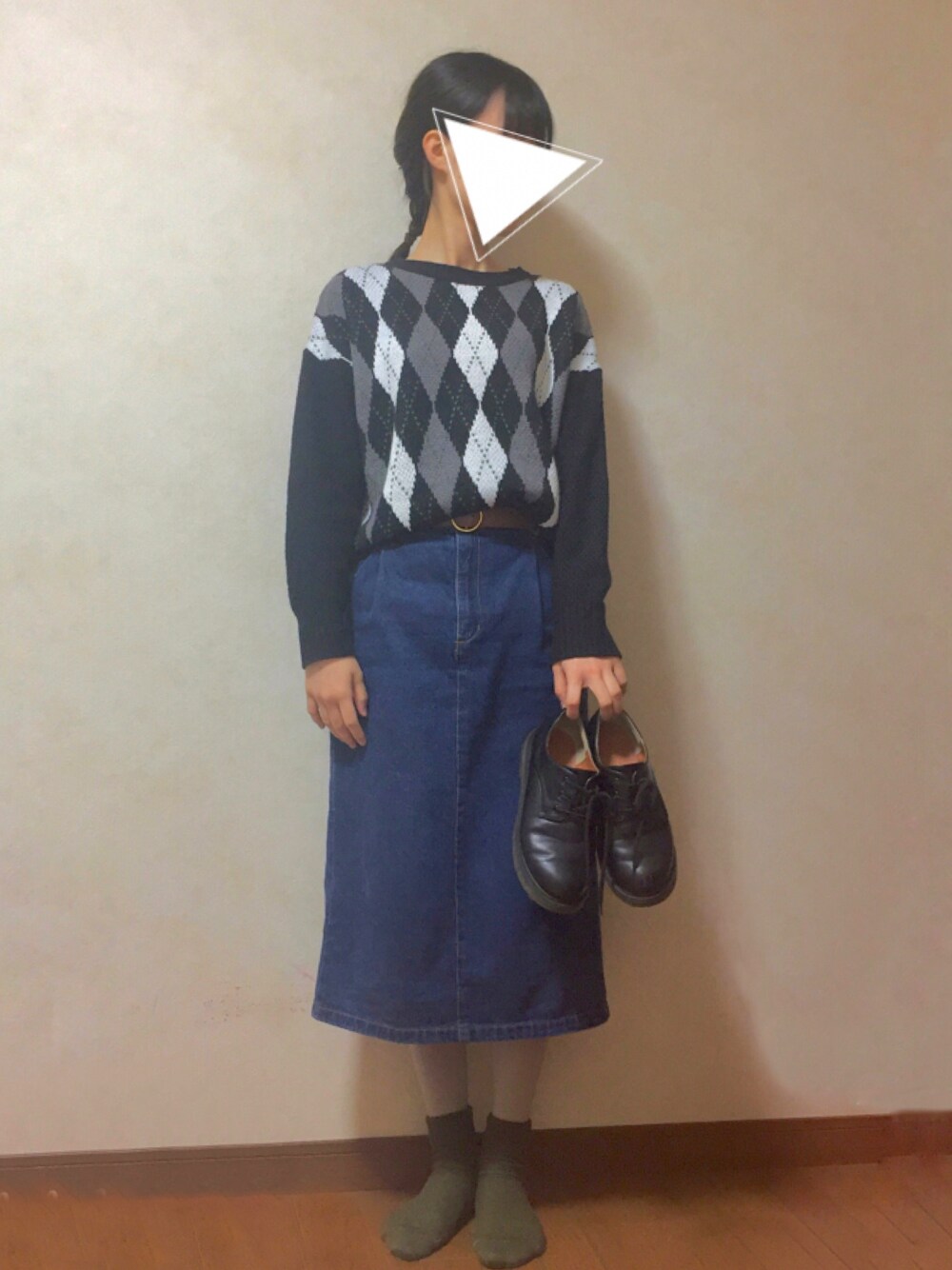 GUのアーガイルセーター 590円で購入😘 素材もいい感じだし 重くないし 丈感も🙆♀️🙆♀️💗