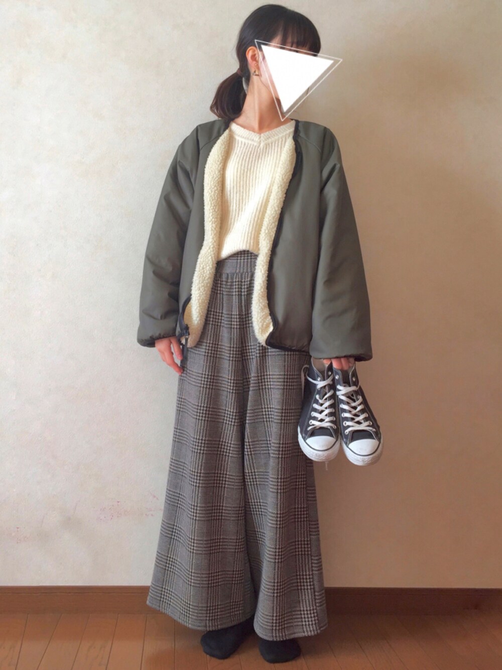 おかゆのブルゾン「リバーシブルボアブルゾン」を使ったコーディネート
