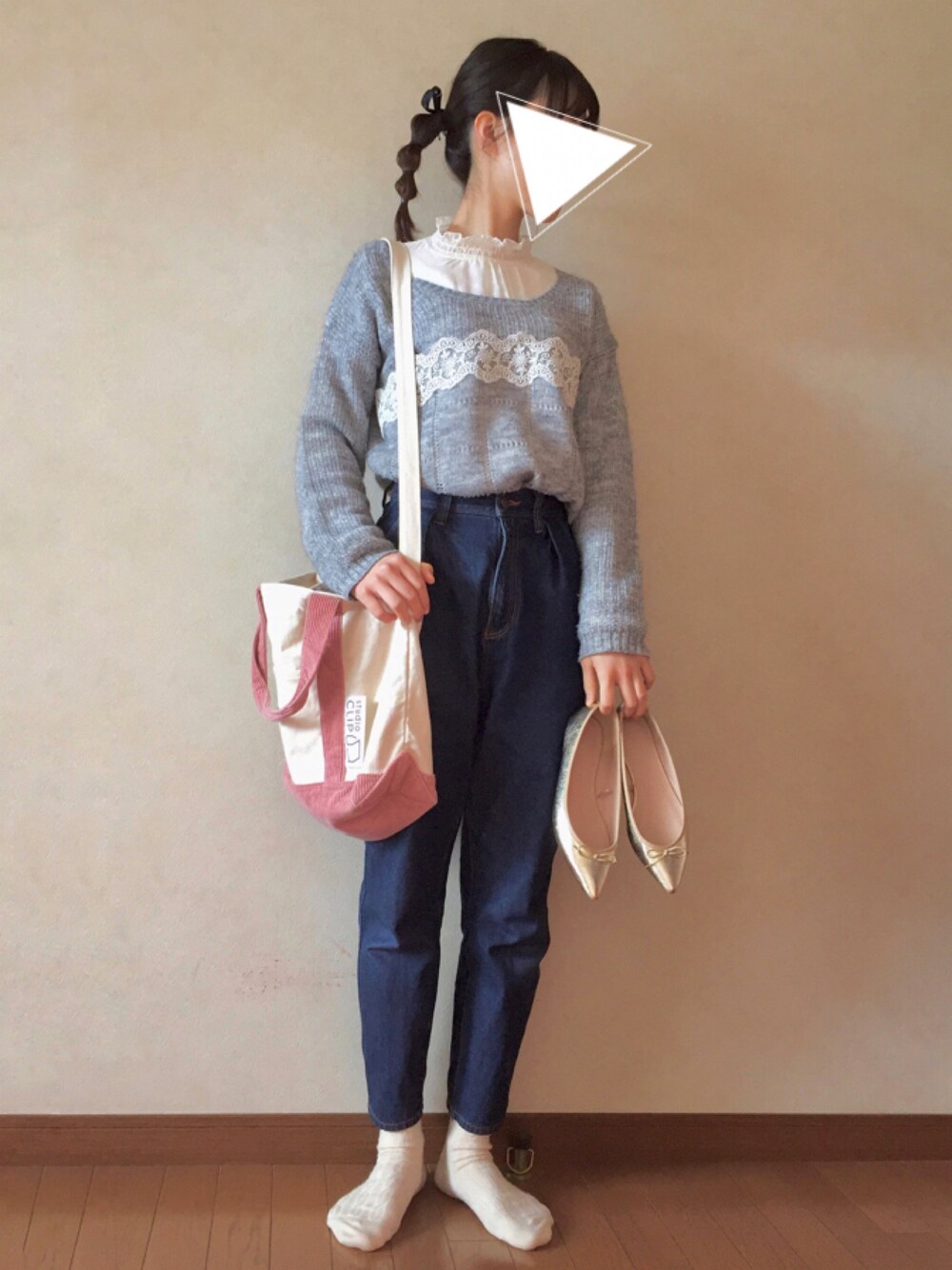 GUのバレエシューズは 値下げで¥790+tax でした! gold / Lサイズ ずっと欲しかったフリルネックのブラウスはHoneysで¥2280😻😻