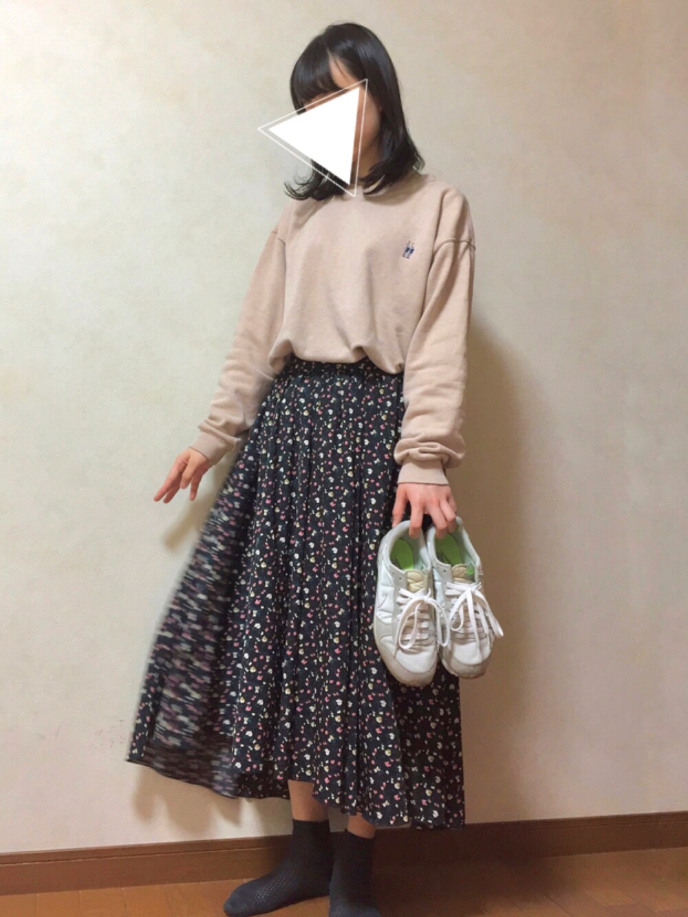 トレーナーはお父さんのものをお借りして☺️笑 写真じゃ分かりにくいかもですが、ぴんくベージュです! 春先まで着られるカジュアルコーデです😚💓