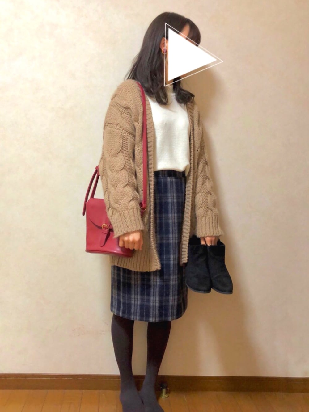 今季初タイツ!!! タイツはtutuannaのもので 分かりにくいけど 焦げ茶です🌰 黒より焦げ茶の方が やわらかい雰囲気になる☺️