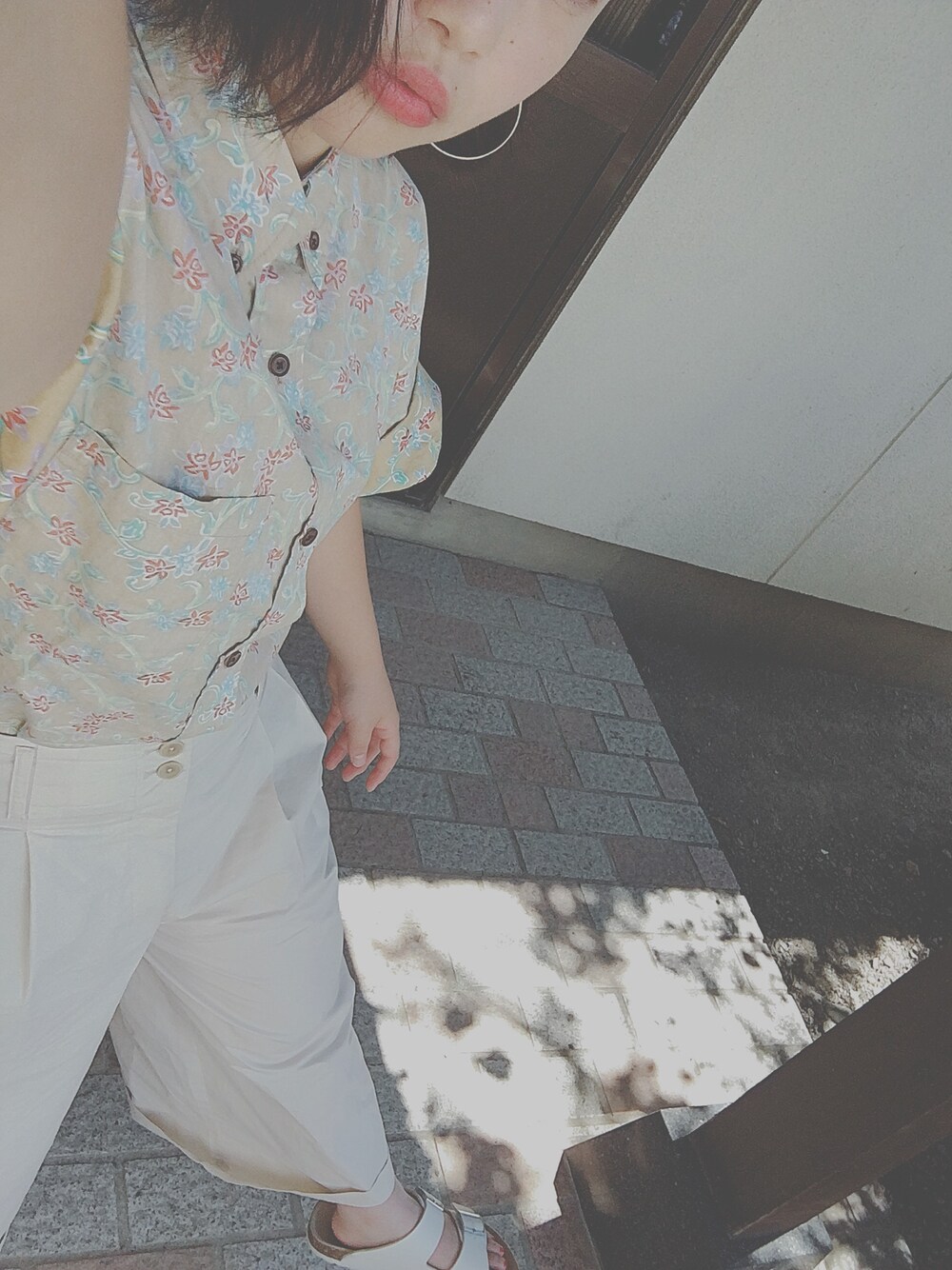 ホワイト系のパンツを着用したレディースの夏コーディネートの1枚目の写真