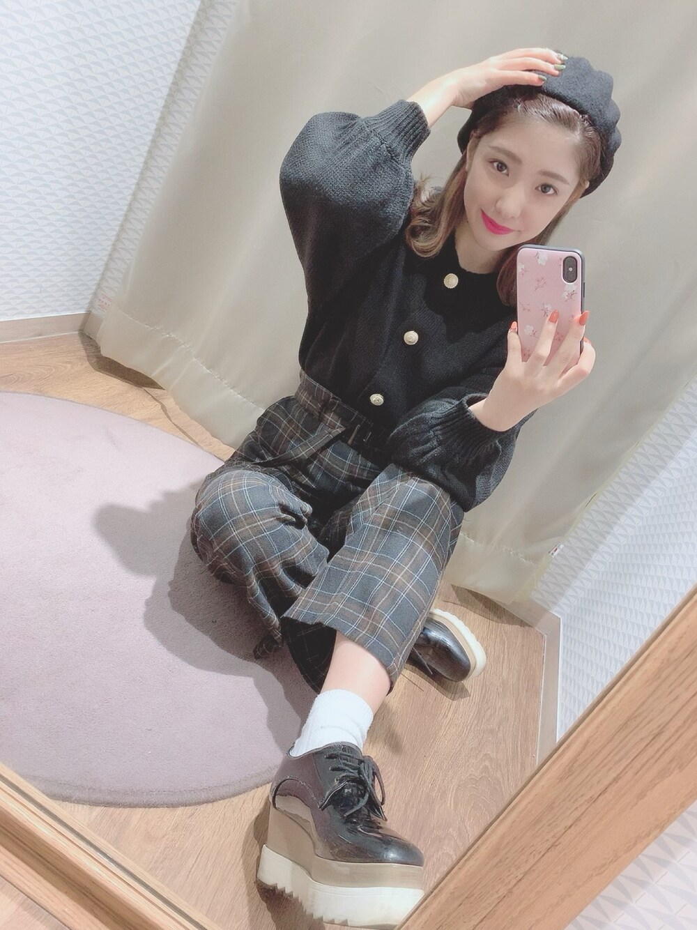 おはようございます☀ 寒くなってきましたね、、 大好きなニットの季節❤︎ レトロカーディガンと チェックのフレアパンツのコーデ❤︎ ベレー帽はマストアイテムです◡̈ (靴はどこのか忘れちゃいました、、)