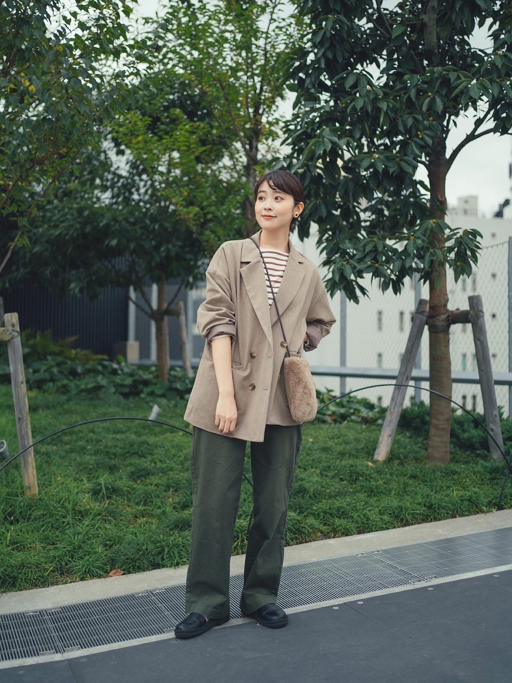 ゆべしのテーラードジャケット「【セットアップ対応】ダブルブレストボックスシルエットジャケット」を使ったコーディネート