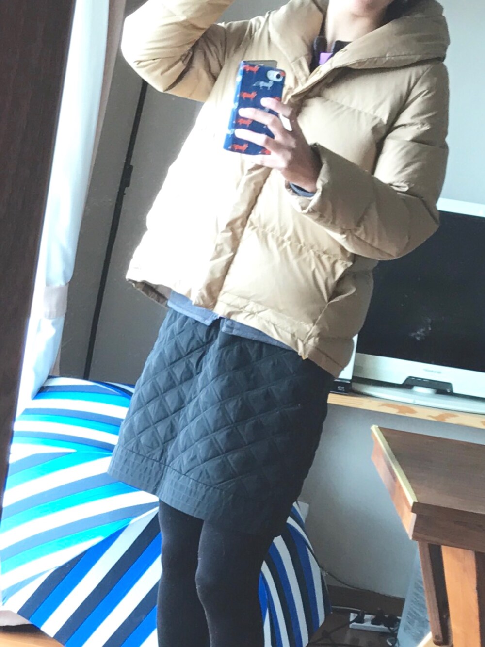 気温一桁の雨コーデ。キルトスカートはあたたかくて上品。 気持ちを明るくする派手傘が雨の日のマストアイテム☆