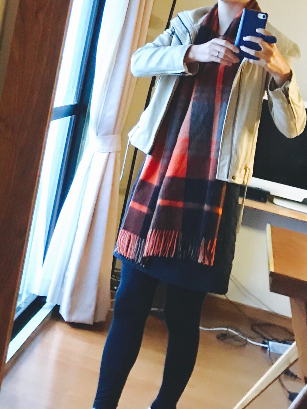 やっと寒くなって冬のコーデが楽しめる♬カシミヤストール大好き(^^)寒いのであえてジャケットの下にしてみた。あったかい