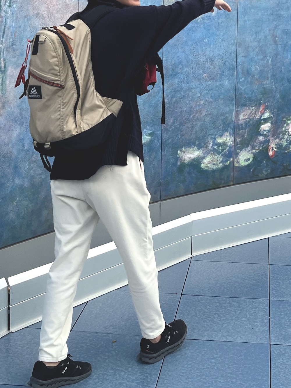 作品観る時は、ガラスに写り込まないダークカラーのトップスが正解!