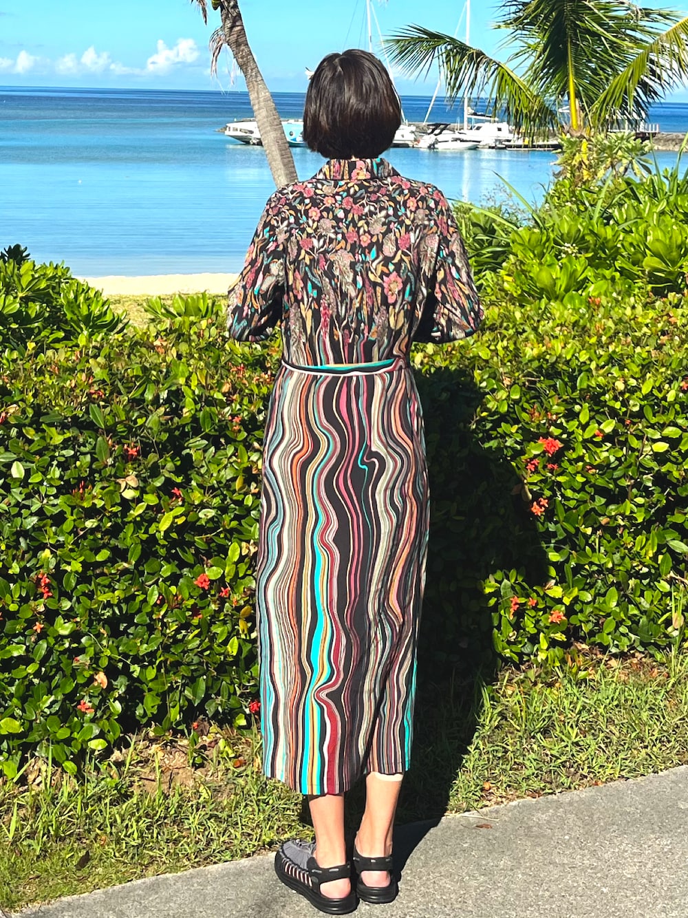 黒ベースの花柄が、上半身から下半身に向かってボーダーになっていくデザインが個性的!デシグアルは正に、人と被らない、ホテルにぴったりなワンピだった。まさかのホテル内のショップもデシグアルのワンピを多数取り扱ってた^ ^ キーンも愛用されてるお客様もちらほら
