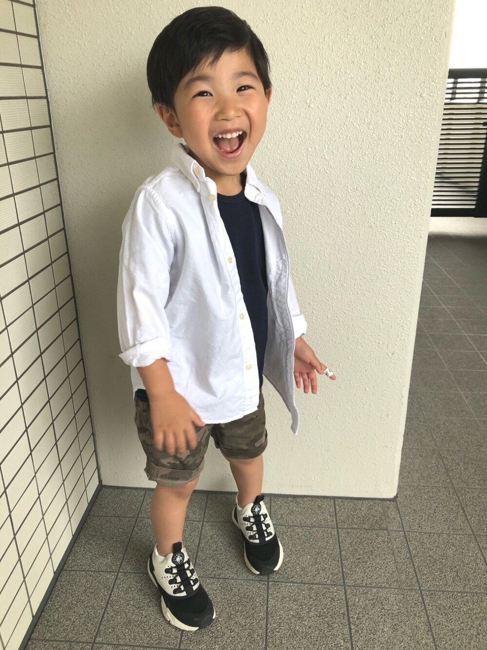 あったかかった今日は ショートパンツはじめました 羽織は要らなかったようで 帰りはTシャツ1枚でした ヘアカット行く前にパチリ カメラ向けるとふざける4歳のこの頃 UNIQLOの迷彩ショートパンツは3年目 さすがにサイズアウトかと思いきや まだいけそう!!