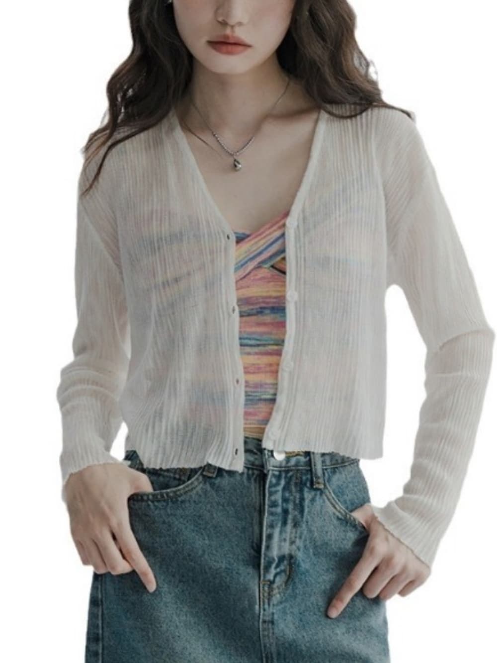 カーディガン レディース 夏 春 薄手 接触冷感 ニット UVカット 透け感 透け 冷房対策 サマー カーデ ニットカーデ 冷感カーディガン サマーカーディガン 薄ニット 長袖 トップス 羽織り 軽量 洗える Vネック 涼しい ボレロ 20代 30代 40代 50代 通勤 オフィス お出かけ