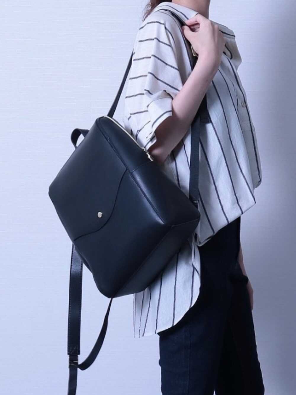 ブラック系のバッグを着用したレディースの秋コーディネートの1枚目の写真