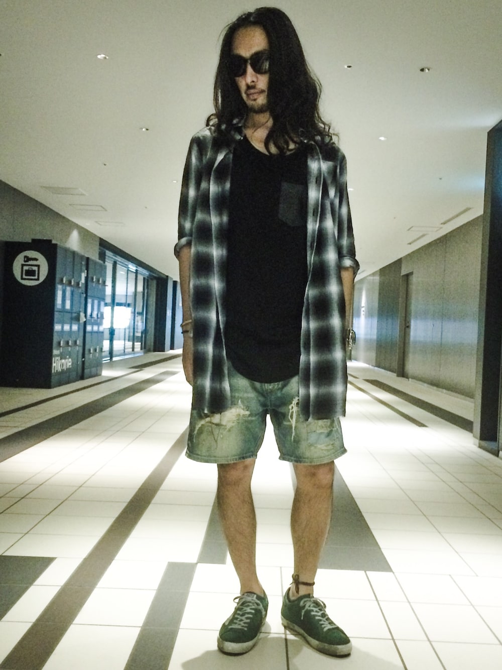 暑いのでだんだん楽な格好になってきましたが室内や移動の時はクーラーが効き過ぎて体調壊しそうになります😵 外では暑いので髪を束ねてシャツは腰巻きです💡😉
