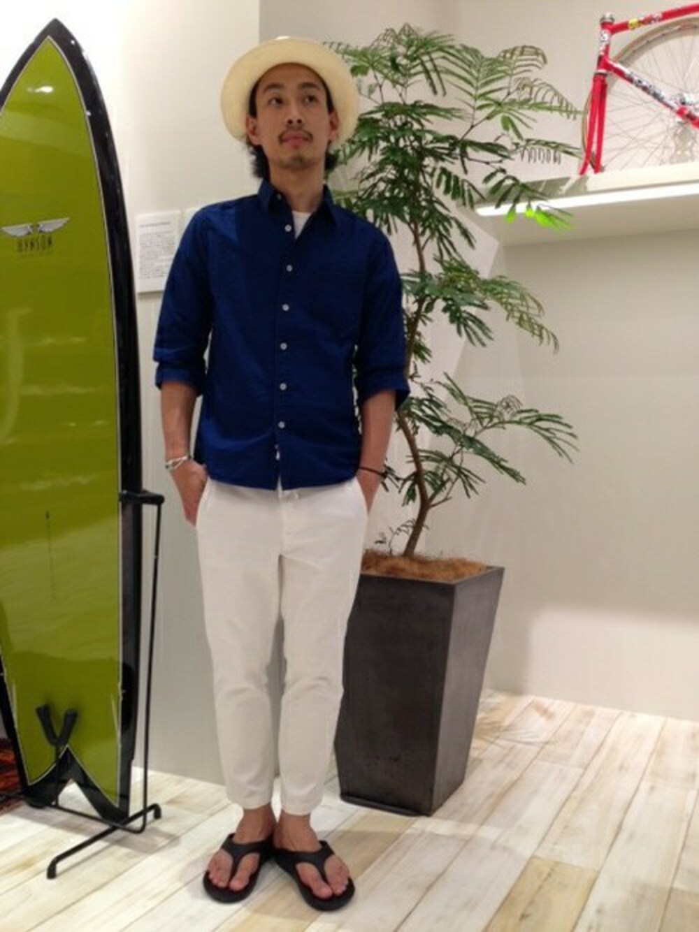 BF HONMAのシャツ/ブラウス「BAYFLOW/インディゴ無地7分袖シャツ」を使ったコーディネート