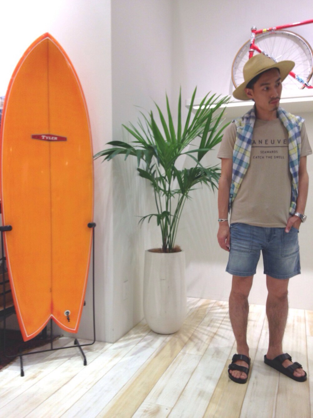 夏のPOPなカラーから一変しておとなし目なアースカラーTEEをチョイス。 シックな大人のカジュアルスタイルですq