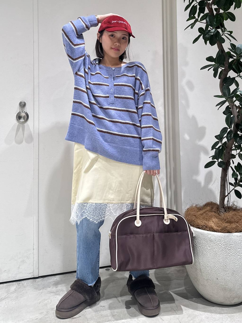 bfmaritan(BAYFLOW ららぽーとTOKYO-BAY店)のキャップ「コーデュロイ刺繍キャップ」を使ったコーディネート