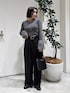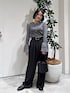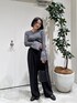 EF袖フリルボーダーニット×HEREIAMトロミタックパンツ ショート丈、タイトなラインにデザインが目立つ袖フリルの個性的トップスにシンプルなタックパンツ🖤 どちらも綺麗なデザインで、さりげないおしゃれさがポイントです💭