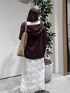 春のブラウンコーデ🤎 トレンドのカジュアルなWジップパーカーにレーススカート!ハリ感のあるパーカーで、程よいゆるっと感! 甘めなレーススカートなのでスニーカー合わせがおすすめです♡