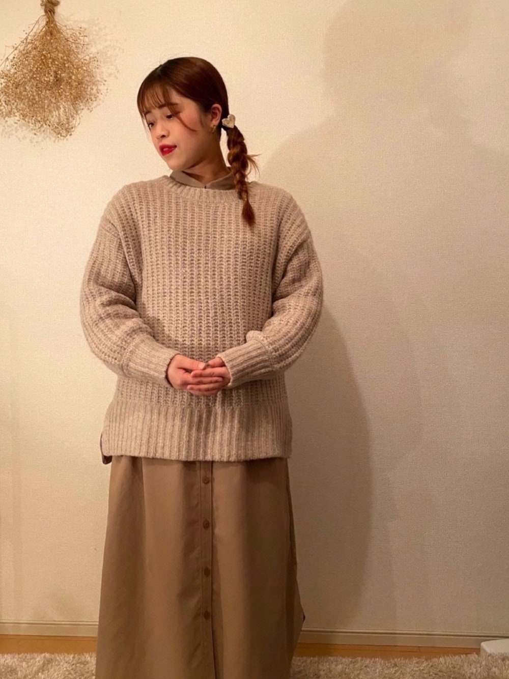 ・ ・ 最近はオーバーサイズのニットが多いですね🧶 ・ シャツワンピースと一緒に同系色で合わせてみました☺️🤎 ・ 今日が初投稿です🌳 自宅で撮影しています👩👨 よろしくお願いします💡