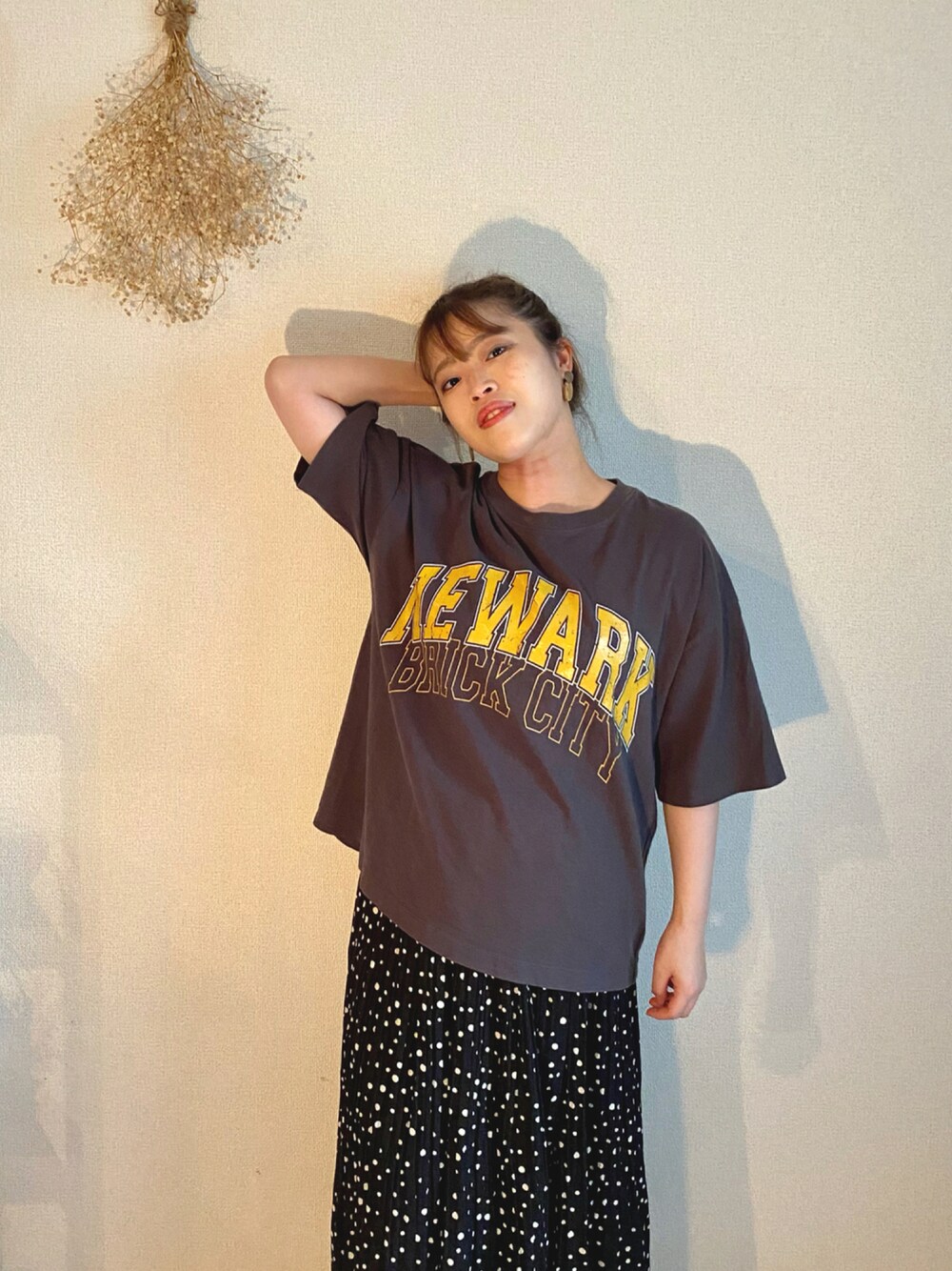 ・ ・ ゆったりとしたロゴT🌼 ・ ドット柄スカートはドットの大きさが様々で可愛いです❤︎