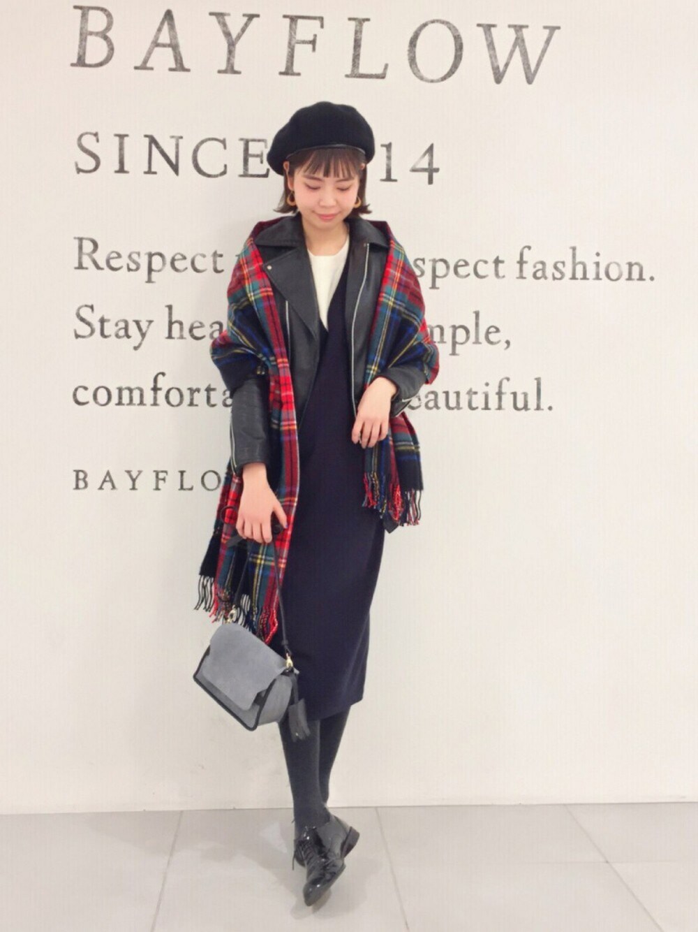 linaのライダースジャケット「BAYFLOW/ラムレザーライダースジャケット」を使ったコーディネート