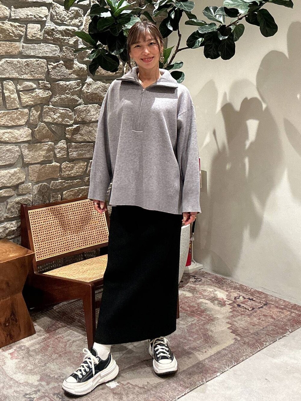 【HEREIAM】 ファインタッチハーフジップ(トップス) スポーティリブスカート(ボトムス) どちらも大好きな商品♡ トップスはサイドにジップがついて よりカジュアルにも着こなせますね