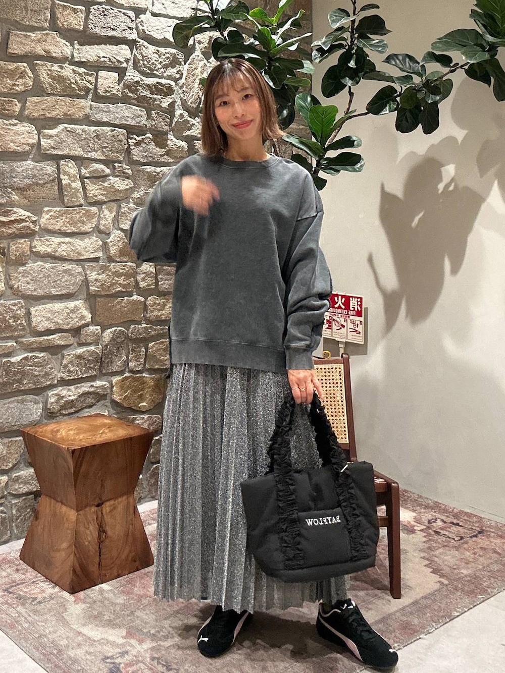 フリンジコンビフェードPO とっても可愛く、ゆったりめで ラメプリーツスカートとの相性もバッチリ👍 スニーカーも可愛い♡