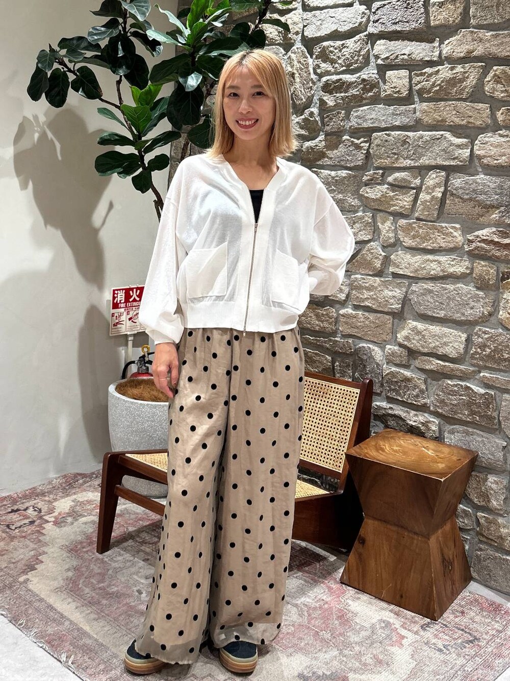 【HEREIAM】 バックドッキングカーディガン シアー感もあり、ショート丈で可愛い👍 ドットパンツはこれ一つでおしゃれ感アップします
