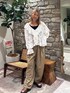 【EF】 ガーリーなブラウス挑戦してみました♡ タックボリュームパンツ形が可愛い♡ 女子ていろんなコーデ楽しめて最高ですよね