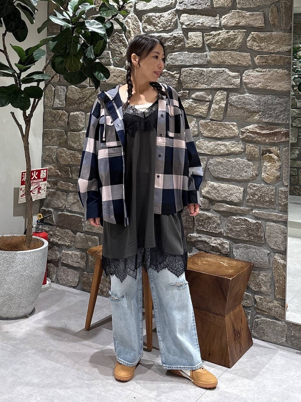 ちょっと珍しくガーリーに♡ スリップドレスをいれて、 大人女子の遊び♡ ダブルポケットパーカーつかえそう👍