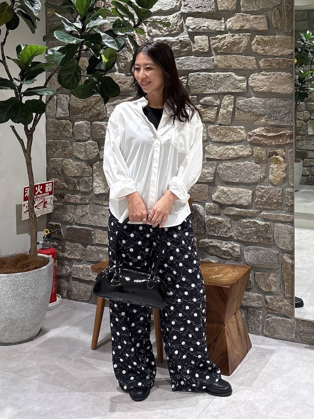 春は白シャツ♡ ジャガード柄パンツも さらっと、はきやすく 可愛いお品です バックも韓国ぽく、ローファーと合わせました♡