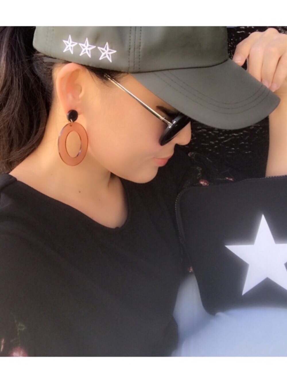 今日の #coordinate 今日着てる、お洋服よりお高い ROSEBUD の キャップ がポイント。 刺繍の星柄がオシャレー!たまらないー♡ インスタグラム lovelife_bibiko2